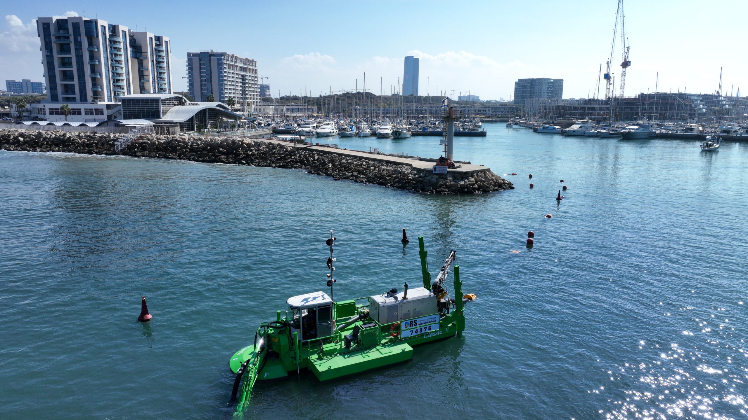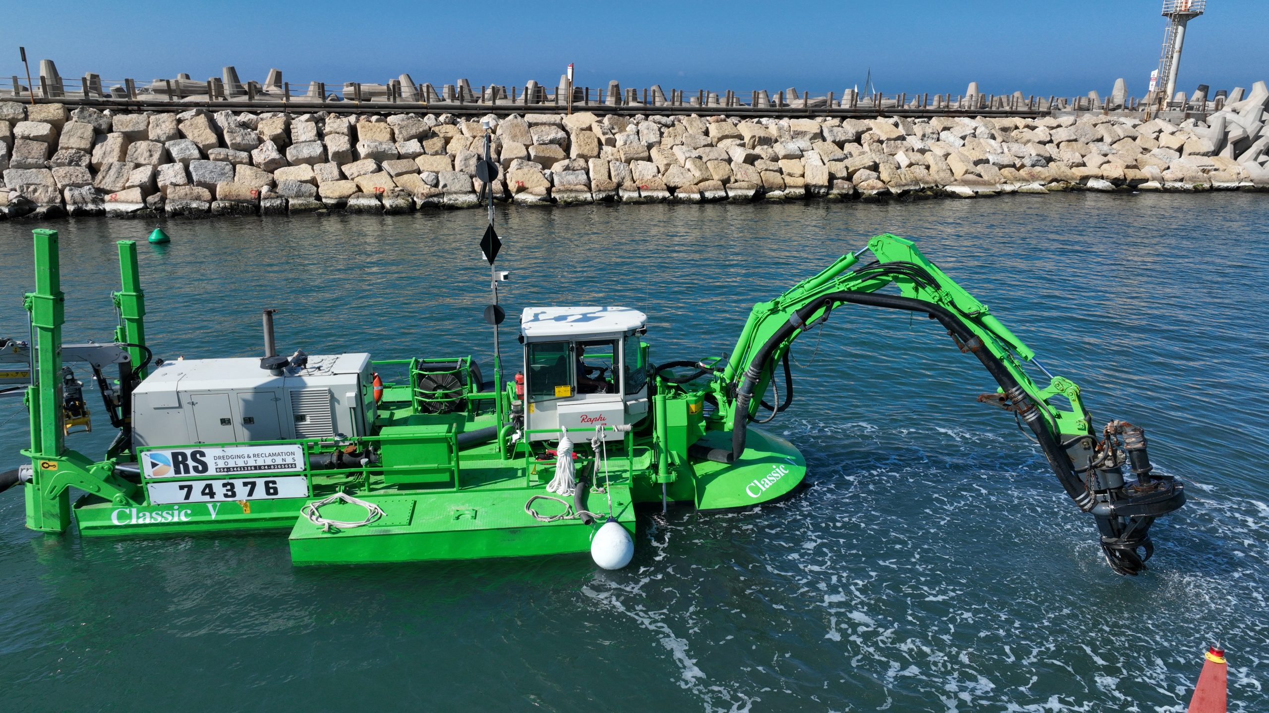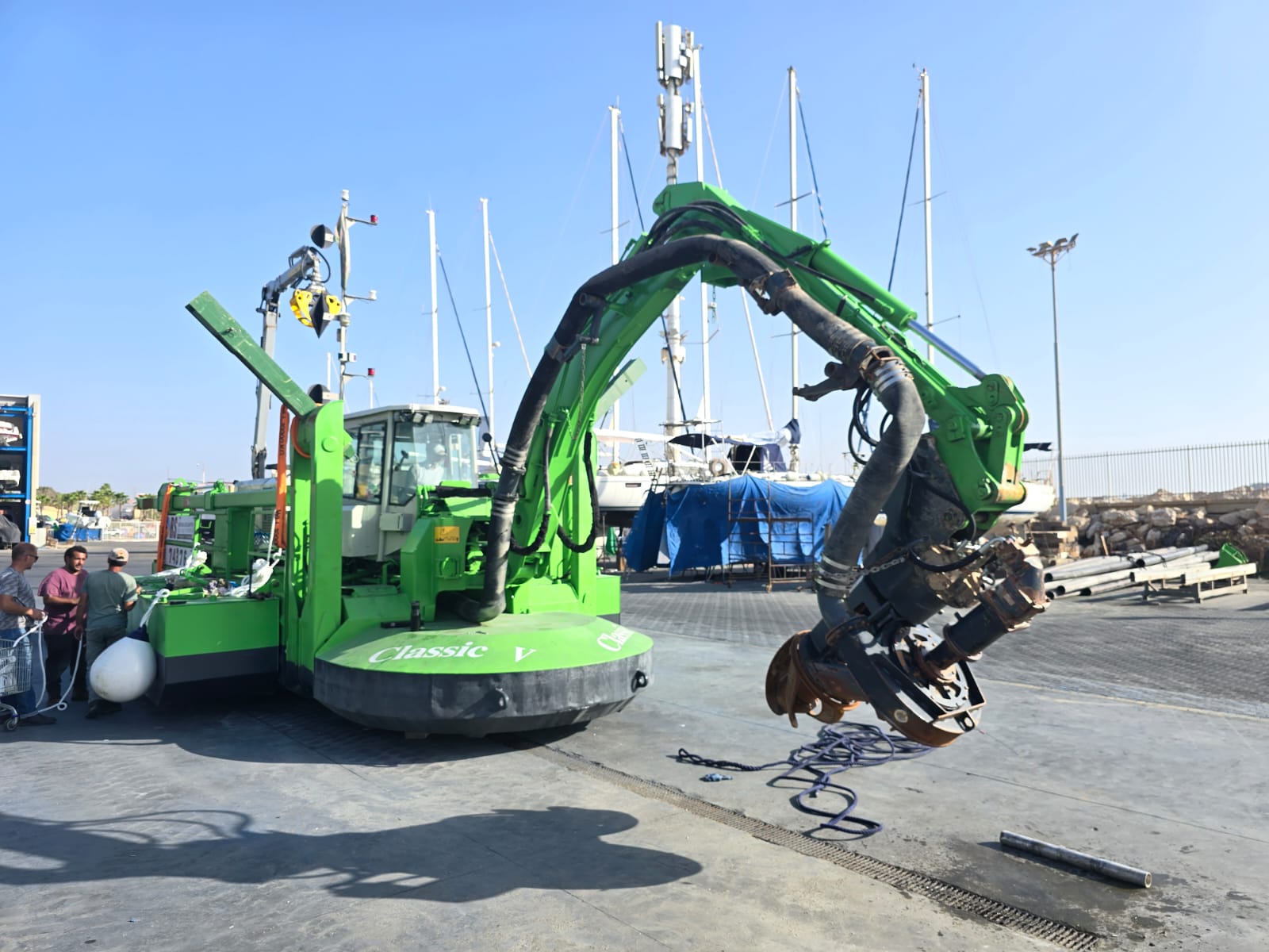 Operation at varying depths – Unlike traditional excavators, our machine can work flexibly at depths ranging from 0 to 6 meters. In shallow areas, it uses its rear stabilizers and digging bucket to move, while in deeper areas it is self-propelled.